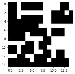 A = (np.random.rand(15, 15) > 0.7) * 255