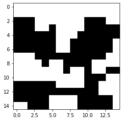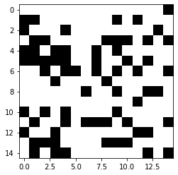 A = (np.random.rand(15, 15) > 0.3) * 255